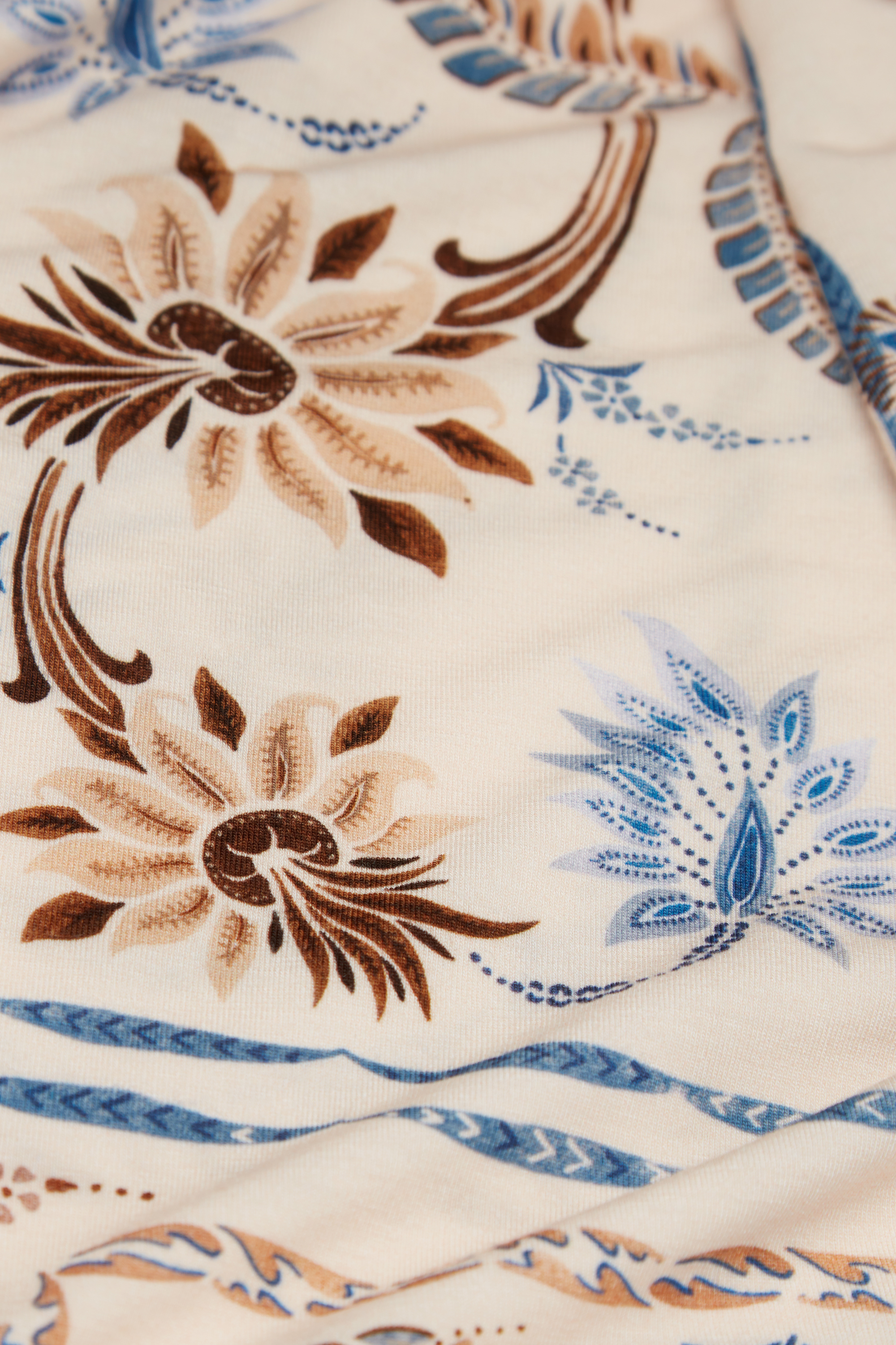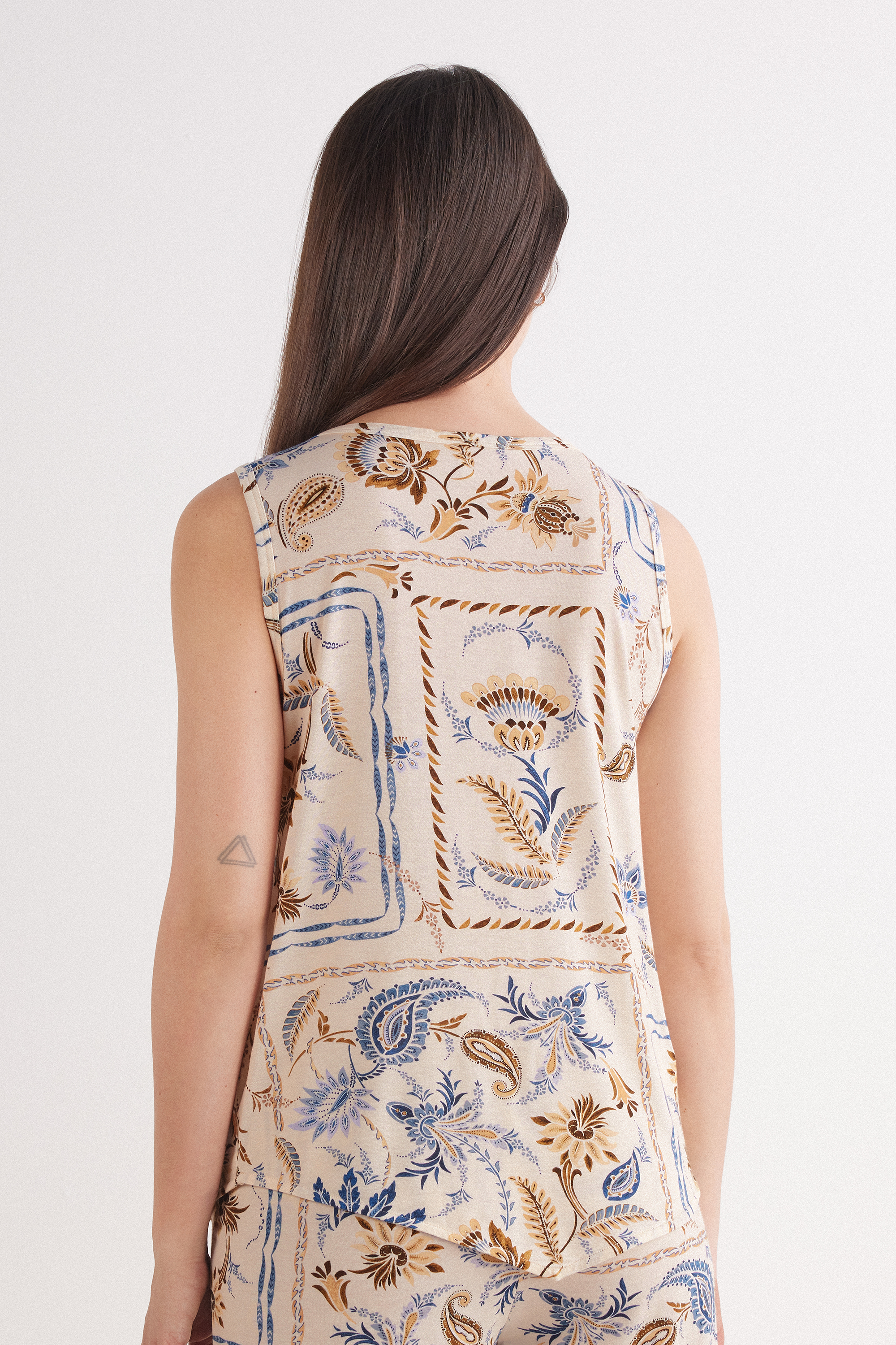 Майка из мягкой бамбуковой вискозы с принтом, напоминающим узоры в стиле средиземноморской майолики.