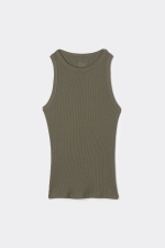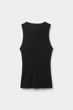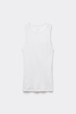Майка фасона «борцовка» с круглым вырезом горловины. Ткань из хлопка Superior в рубчик. Облегающий силуэт.