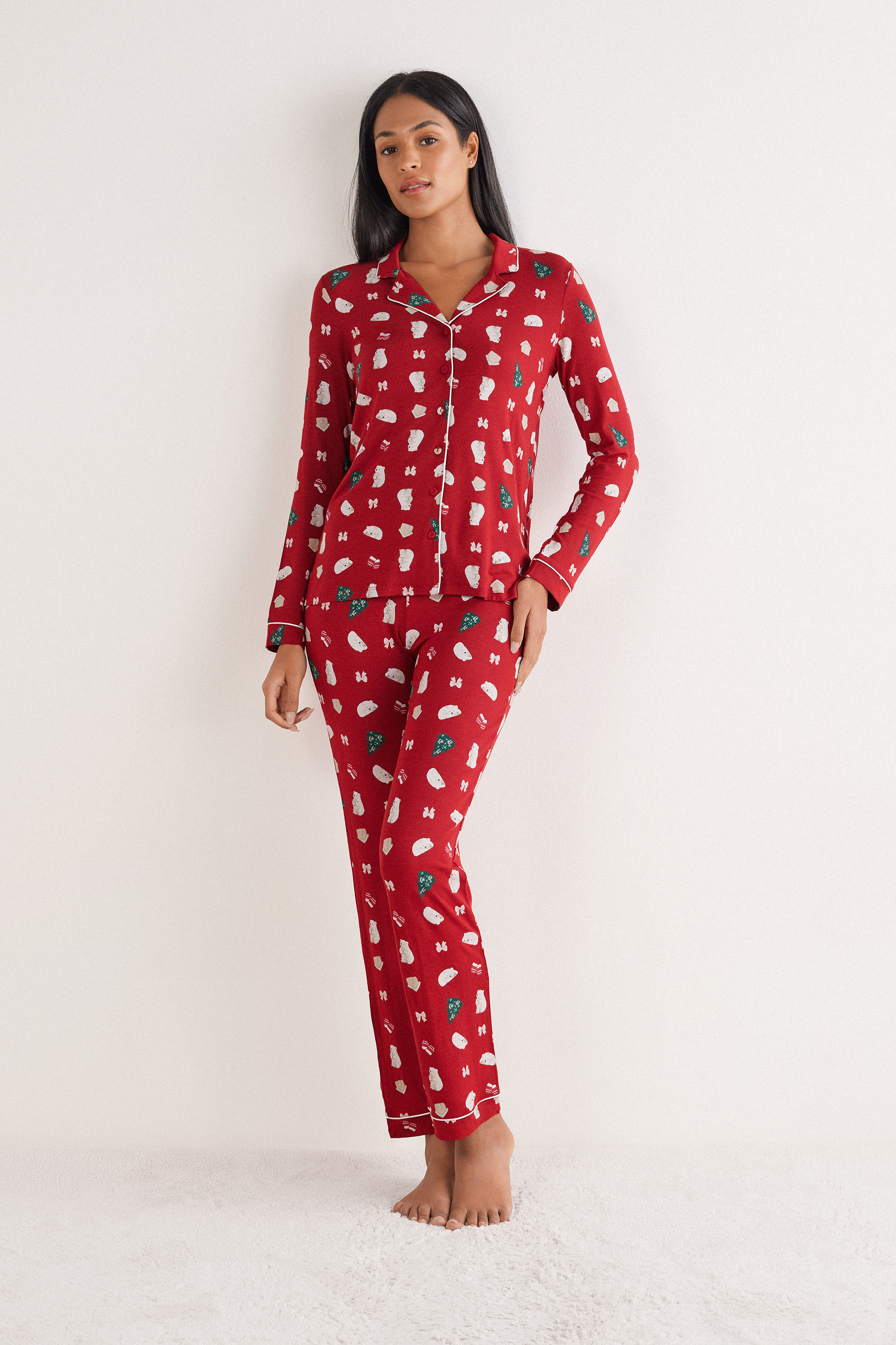 Длинная пижама в мужском стиле, выполненная из мягкого модала с новогодним принтом.
