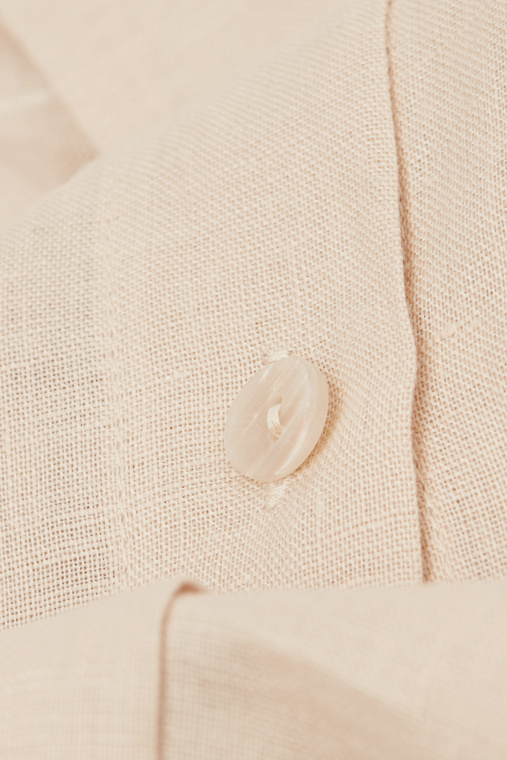 Льняная рубашка с нагрудным кармашком и манжетами на рукавах.
