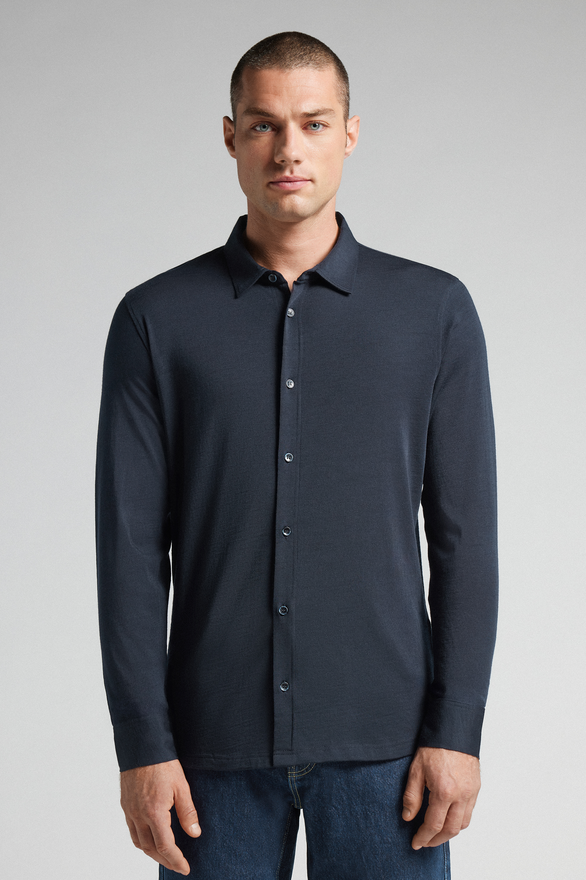 Рубашка с длинными рукавами, выполненная из слегка эластичной шерсти мериноса. Элегантная и комфортная модель, которую можно носить как отдельно, так и с пиджаком — для создания образа в непринужденном стиле.
