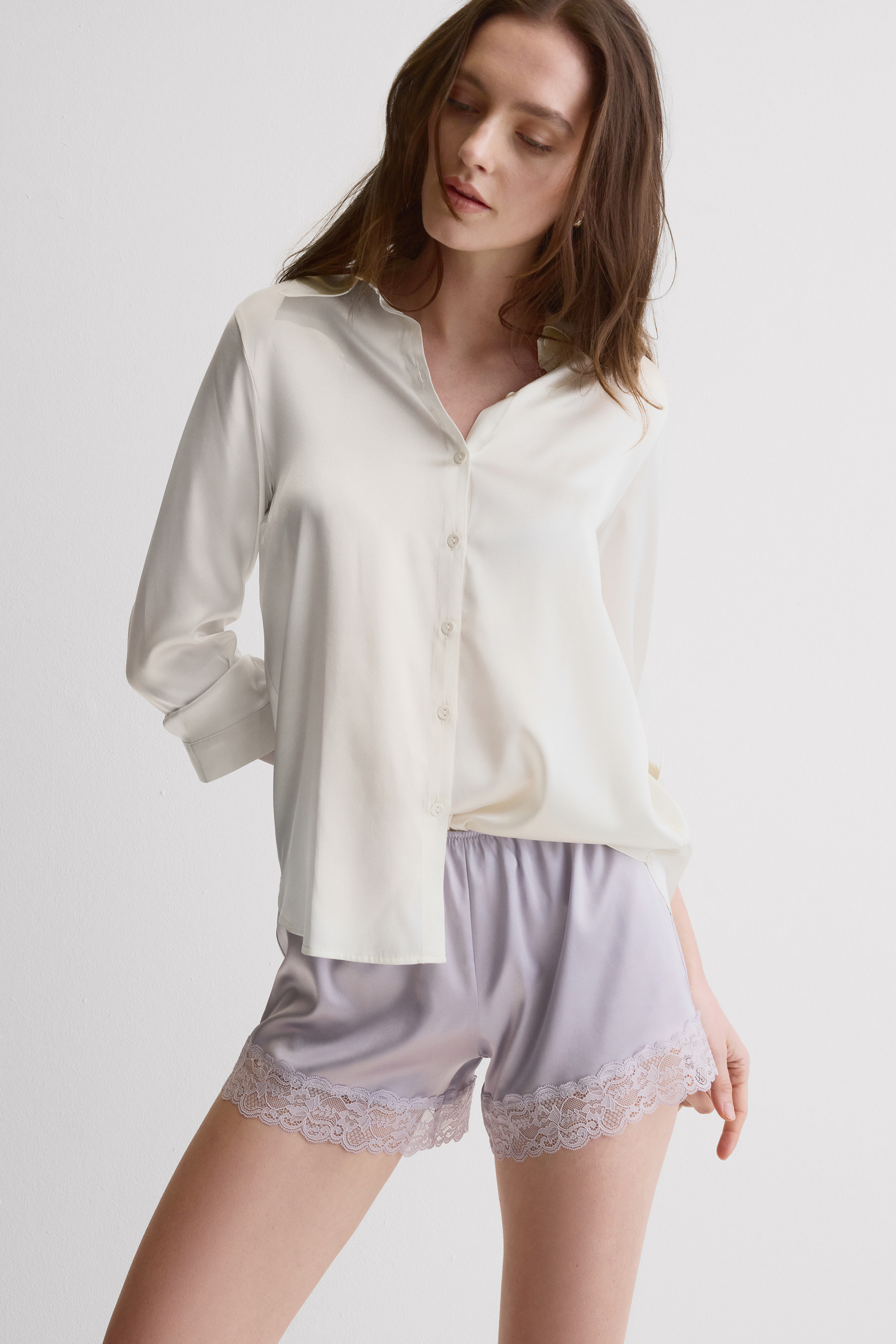 Шорты из слегка эластичного шелкового атласа. Отделка кружевной каймой.