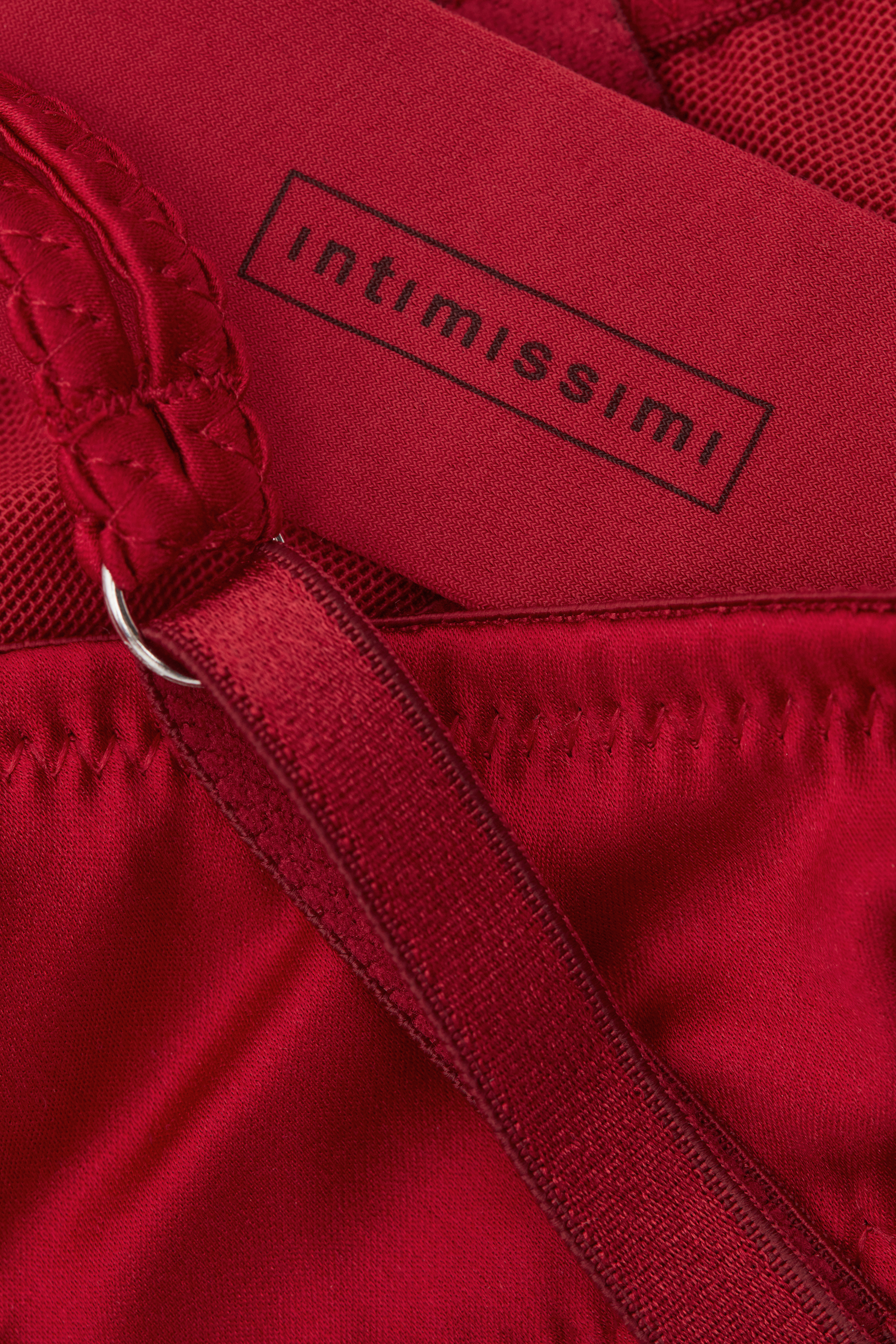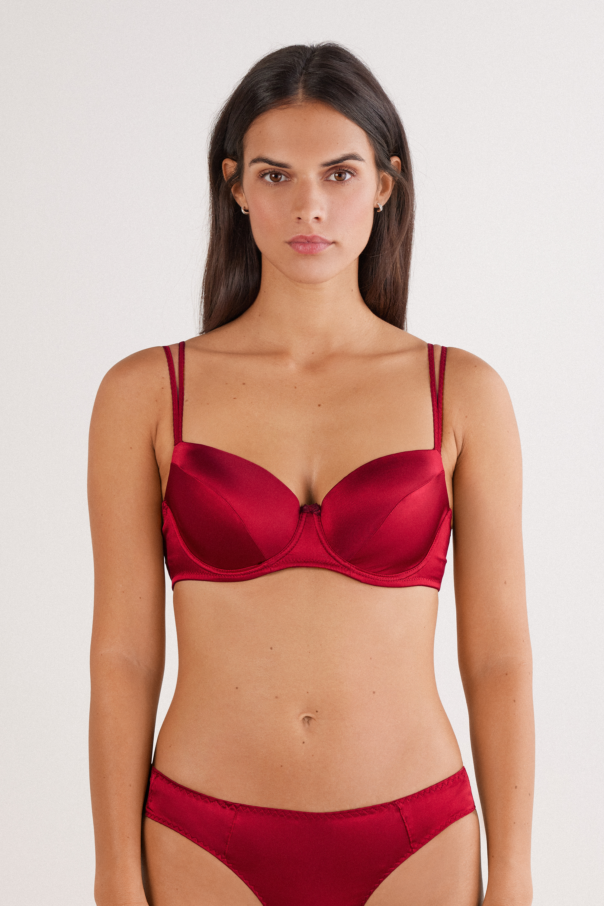Бюстгальтер балконет Sofia со слегка уплотненными чашками на косточке, которые хорошо охватывают и поддерживают грудь. Изделие выполнено из слегка эластичного шёлка. Благодаря двухслойному поясу из тюля бюстгальтер плотно прилегает к телу. Элегантные двойные бретели с эффектом переплетения спереди регулируются на спинке. В изделиях размеров 3D, 4C и 5B для лучшей регулировки бретели полностью выполнены из эластичной тесьмы. Модель обеспечивает оптимальную поддержку и подчеркивает зону декольте, округляя формы. Идеально подходит для создания изысканного и чувственного образа.