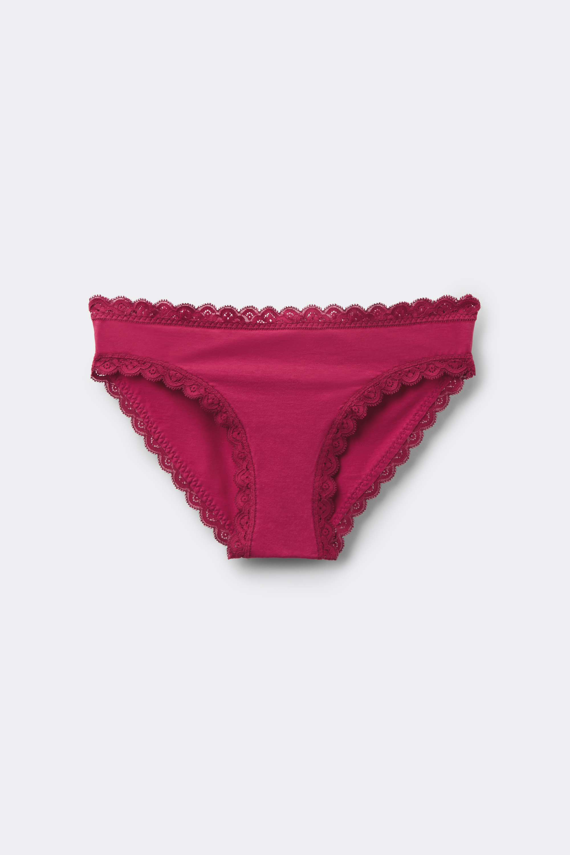 Слипы из слегка эластичного хлопка с изящной кружевной каймой по краю. Идеальный вариант для тех, кто ищет простую и удобную модель с романтичными нотками.