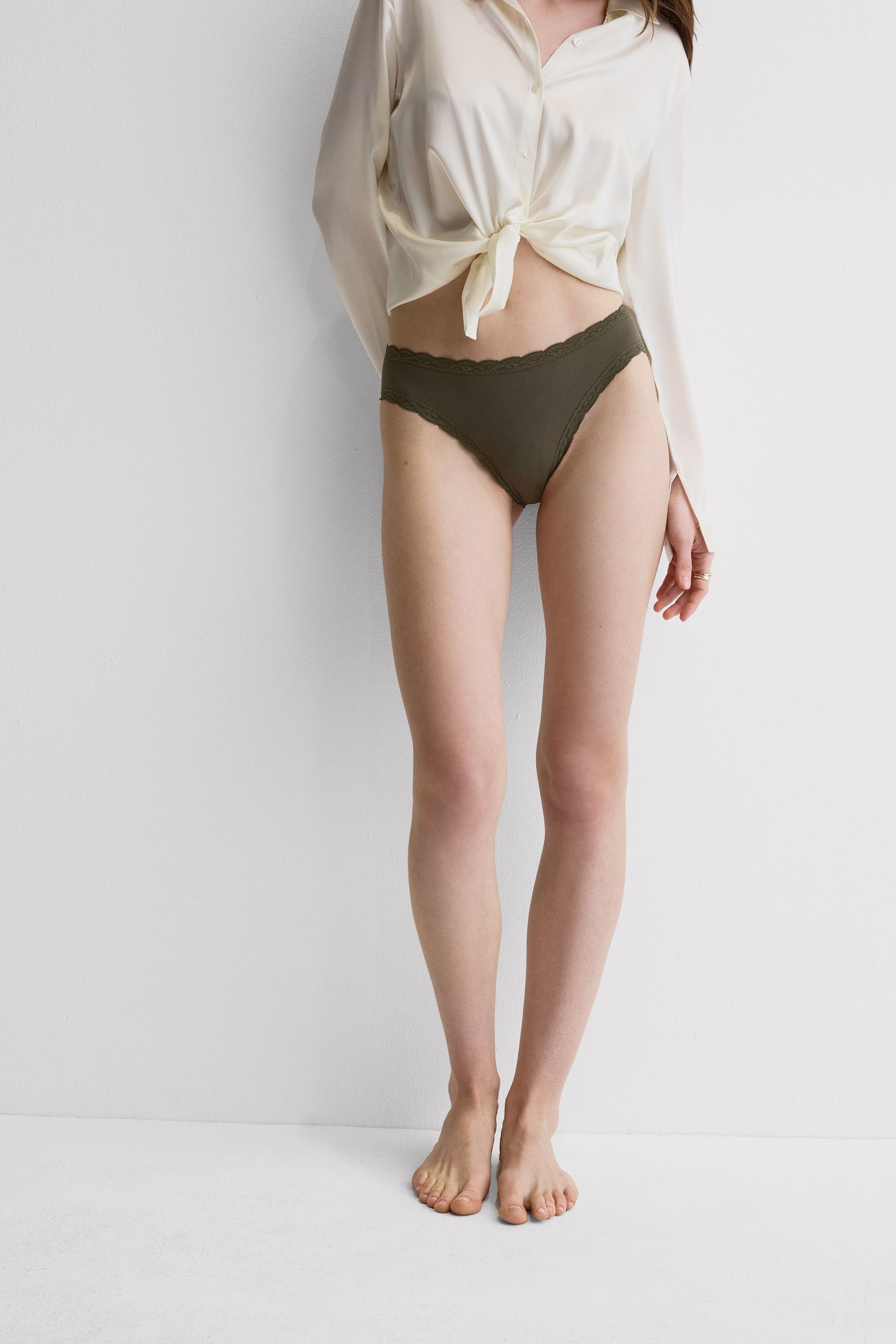 Слипы из слегка эластичного хлопка с изящной кружевной каймой по краю. Идеальный вариант для тех, кто ищет простую и удобную модель с романтичными нотками.