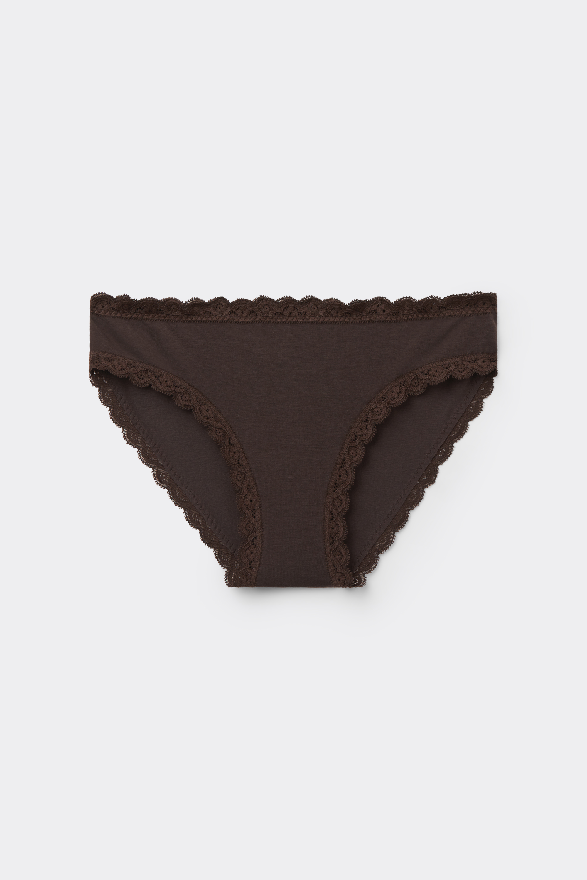 Слипы из слегка эластичного хлопка с изящной кружевной каймой по краю. Идеальный вариант для тех, кто ищет простую и удобную модель с романтичными нотками.