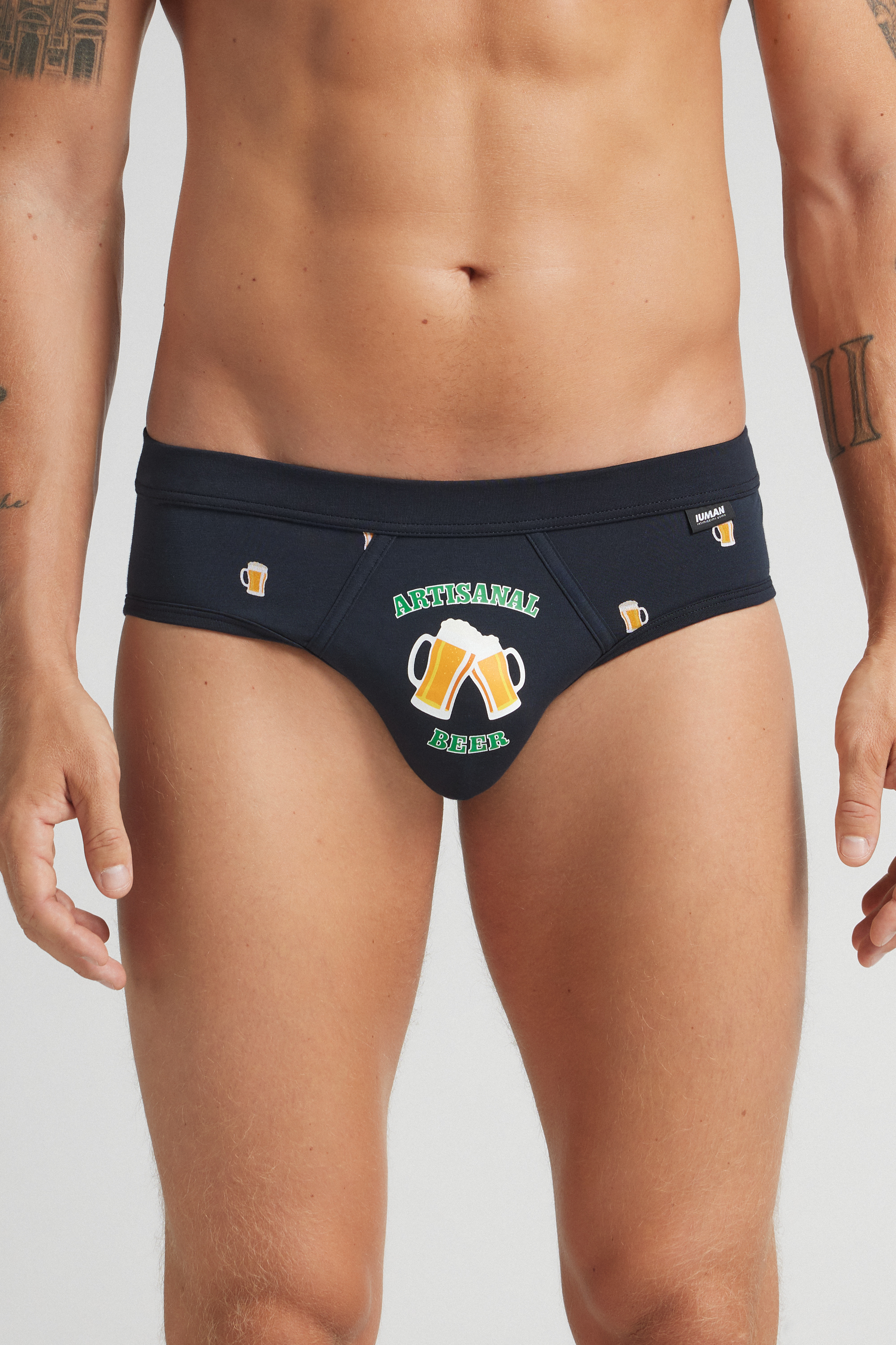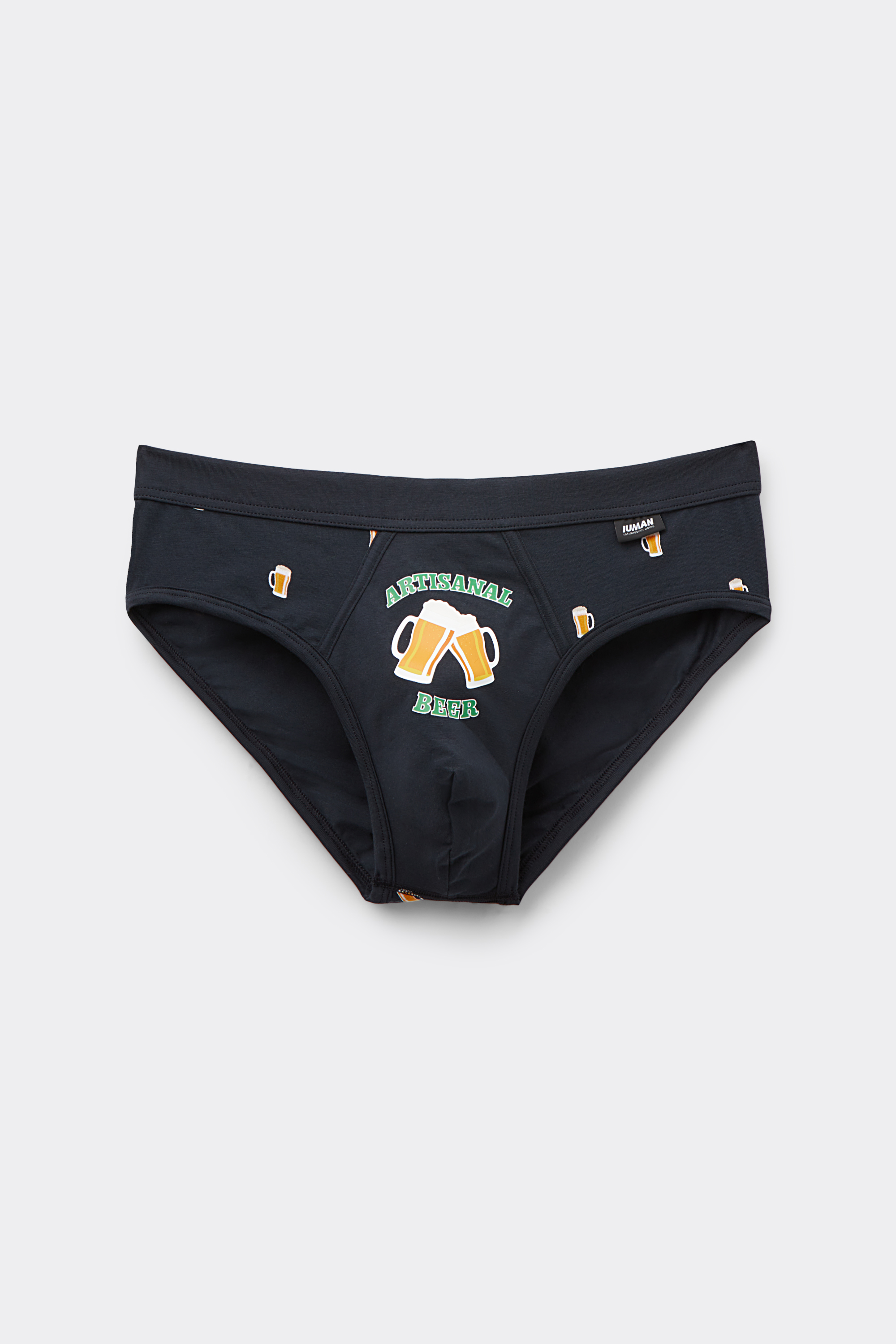 Слипы из мягкого эластичного хлопка Superior с принтом «пиво» по всему изделию и забавным принтом на передней вставке.