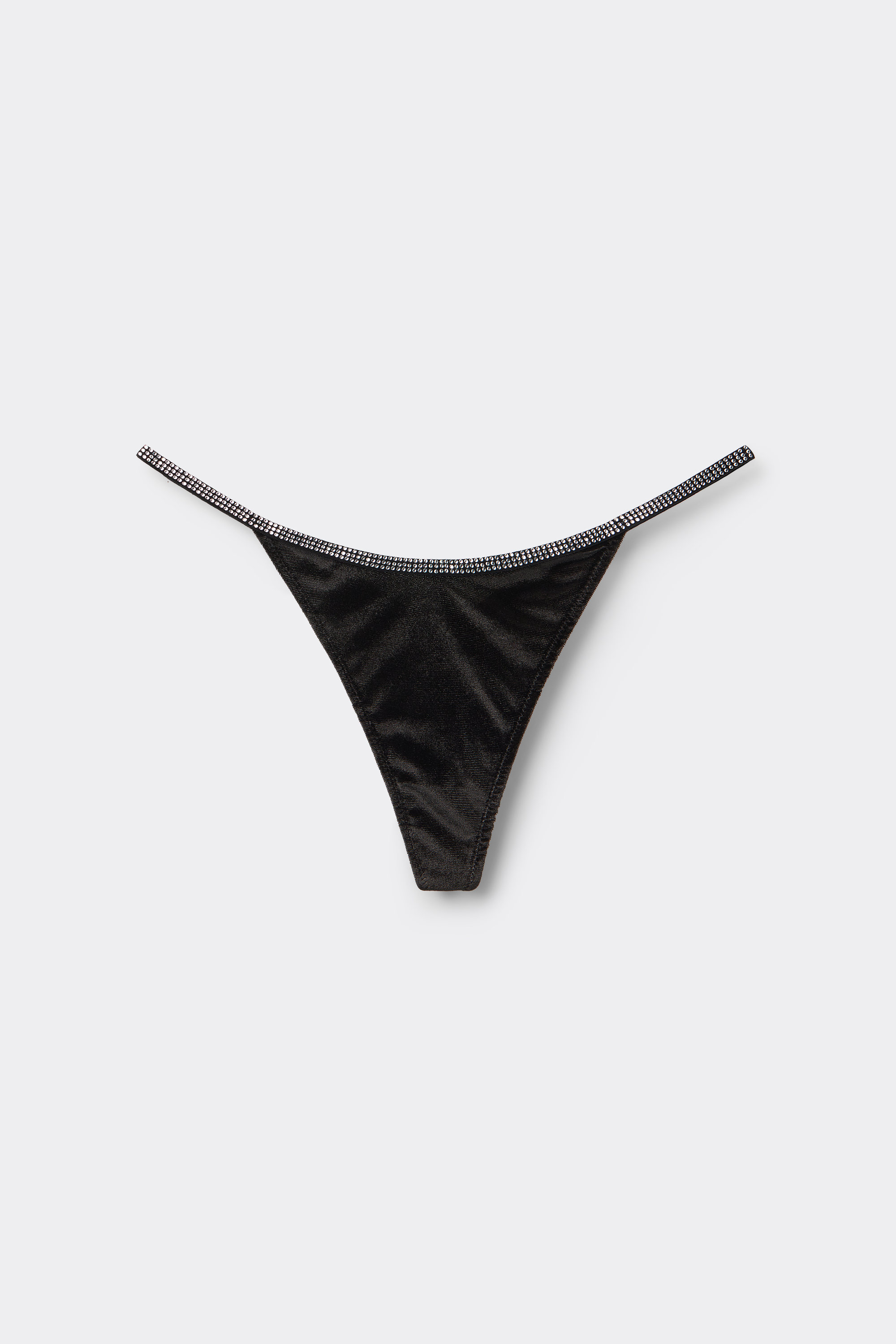 Стринги в стиле 80-х годов. Модель из мягкого эластичного бархата с отделкой стразами.