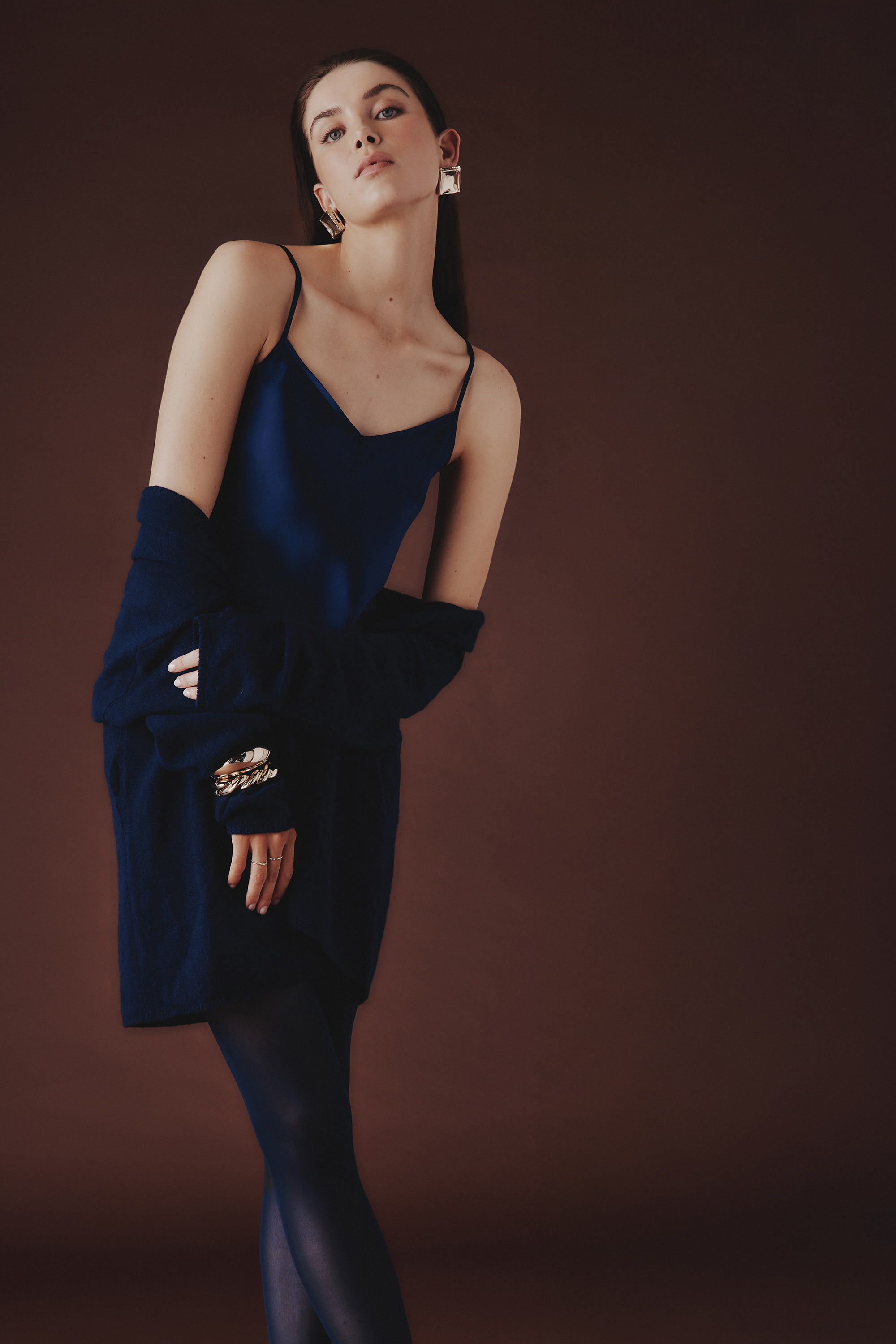 Топ из шелкового атласа с V-образными вырезами впереди и сзади. Регулируемые тонкие бретели.