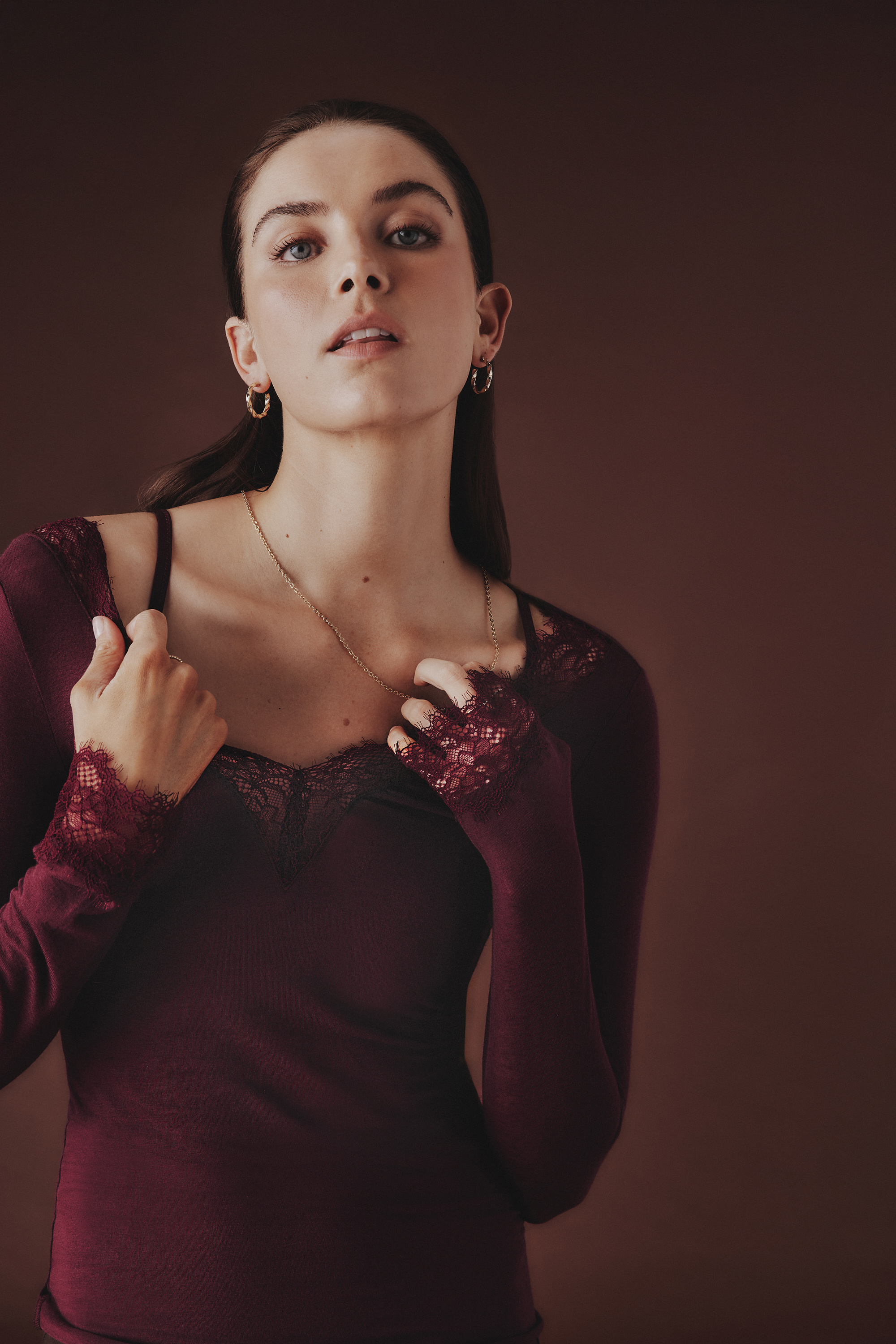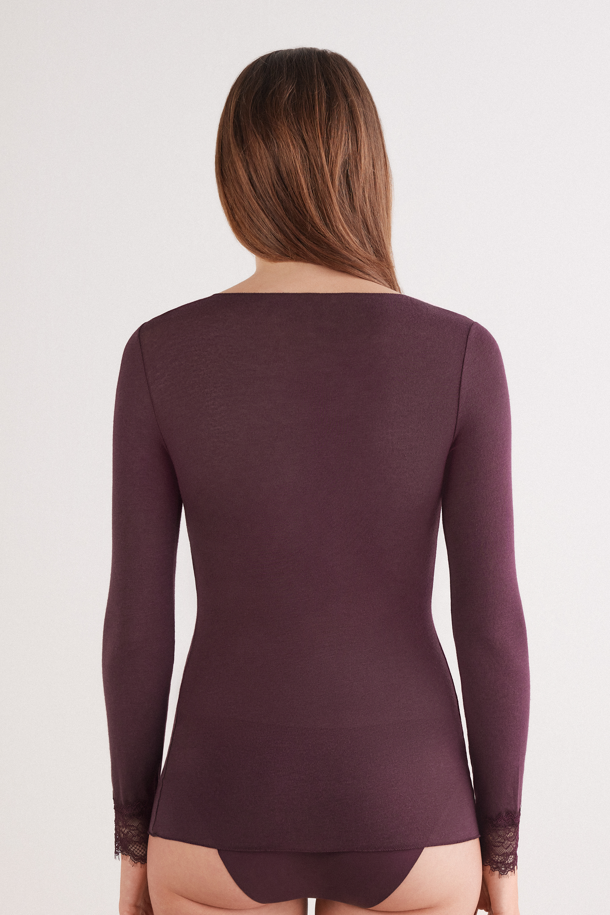 Лонгслив из ультралегкого кашемира и модала, украшенный кружевом.