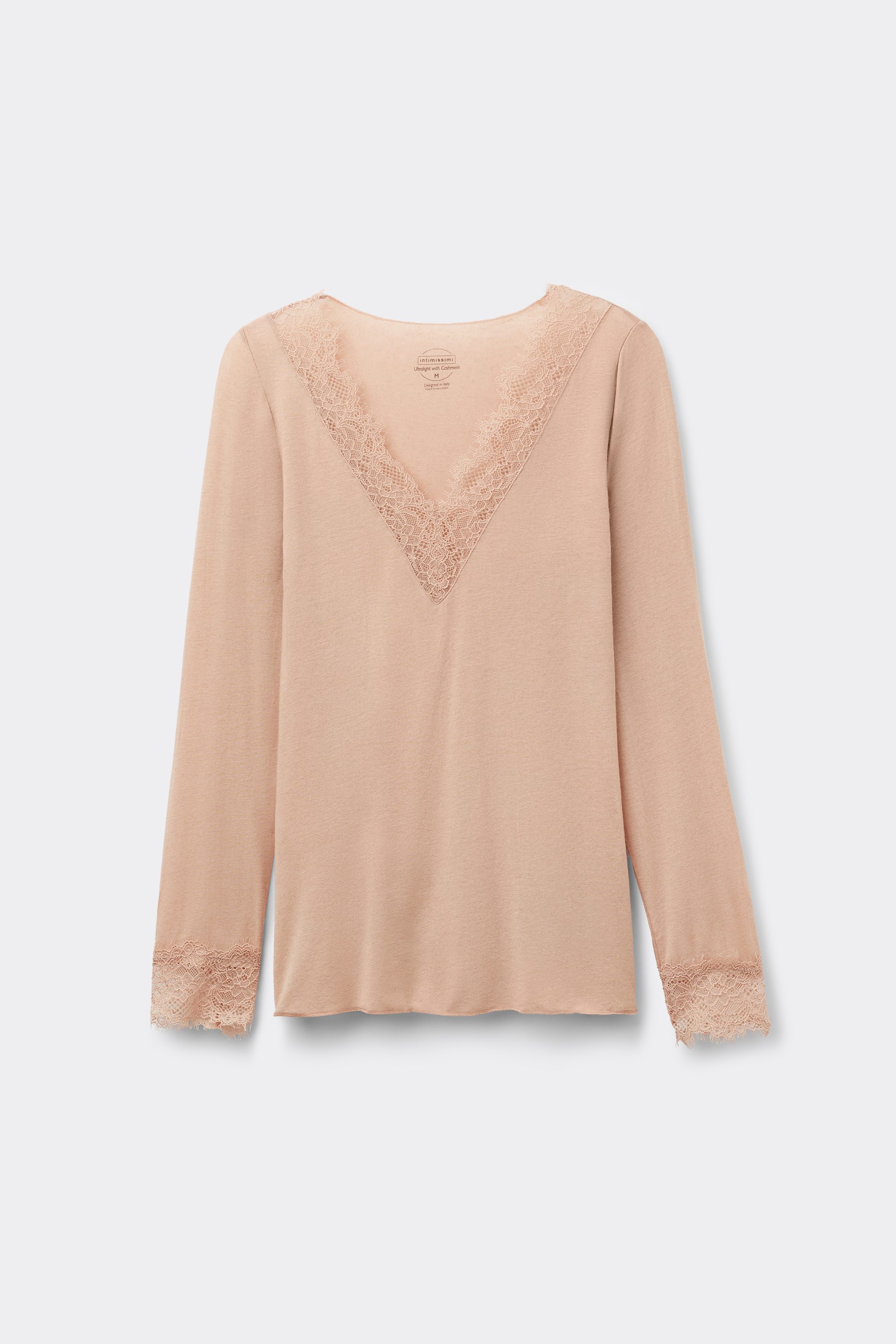 Лонгслив из ультралегкого кашемира и модала, украшенный кружевом.