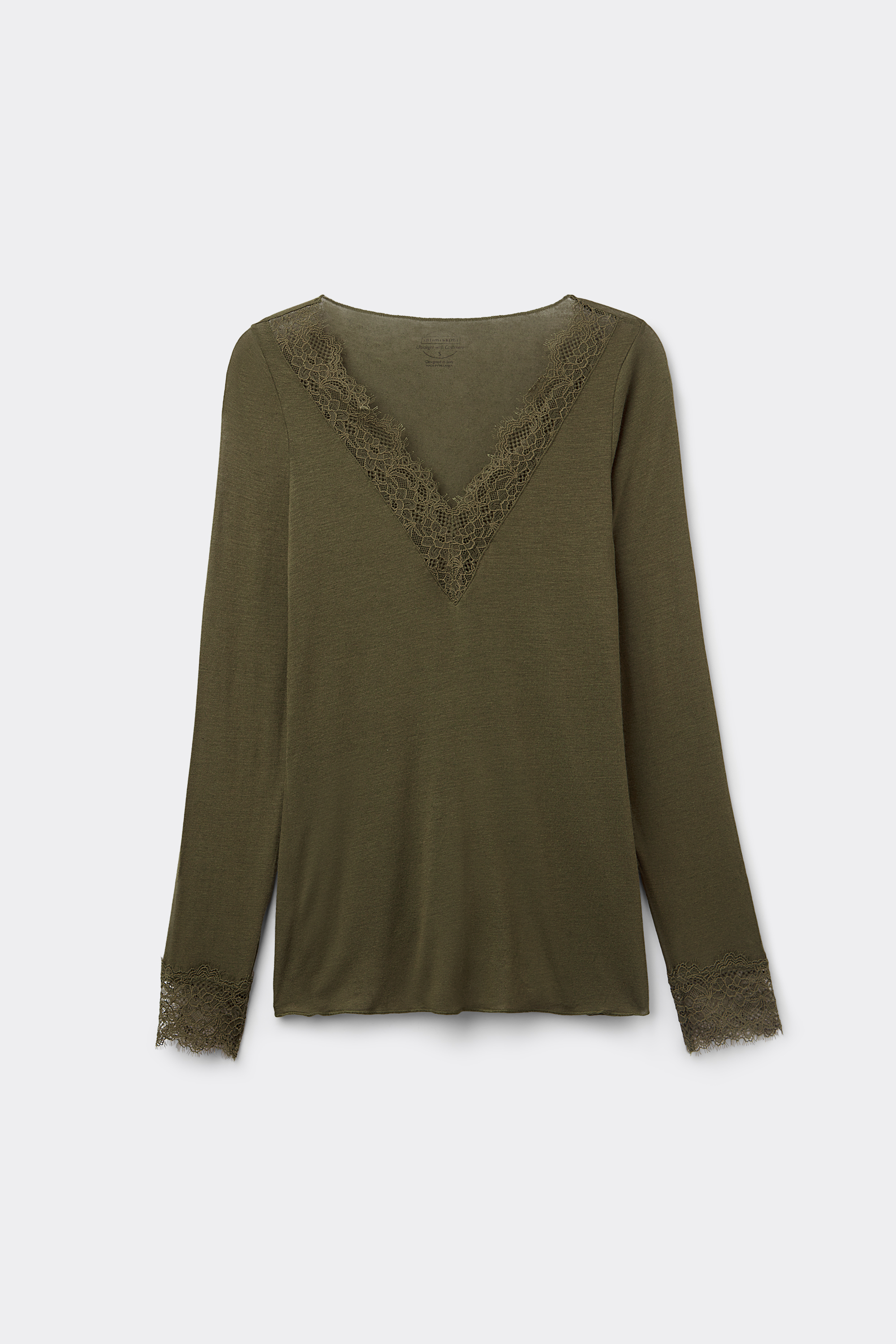Лонгслив из ультралегкого кашемира и модала, украшенный кружевом.
