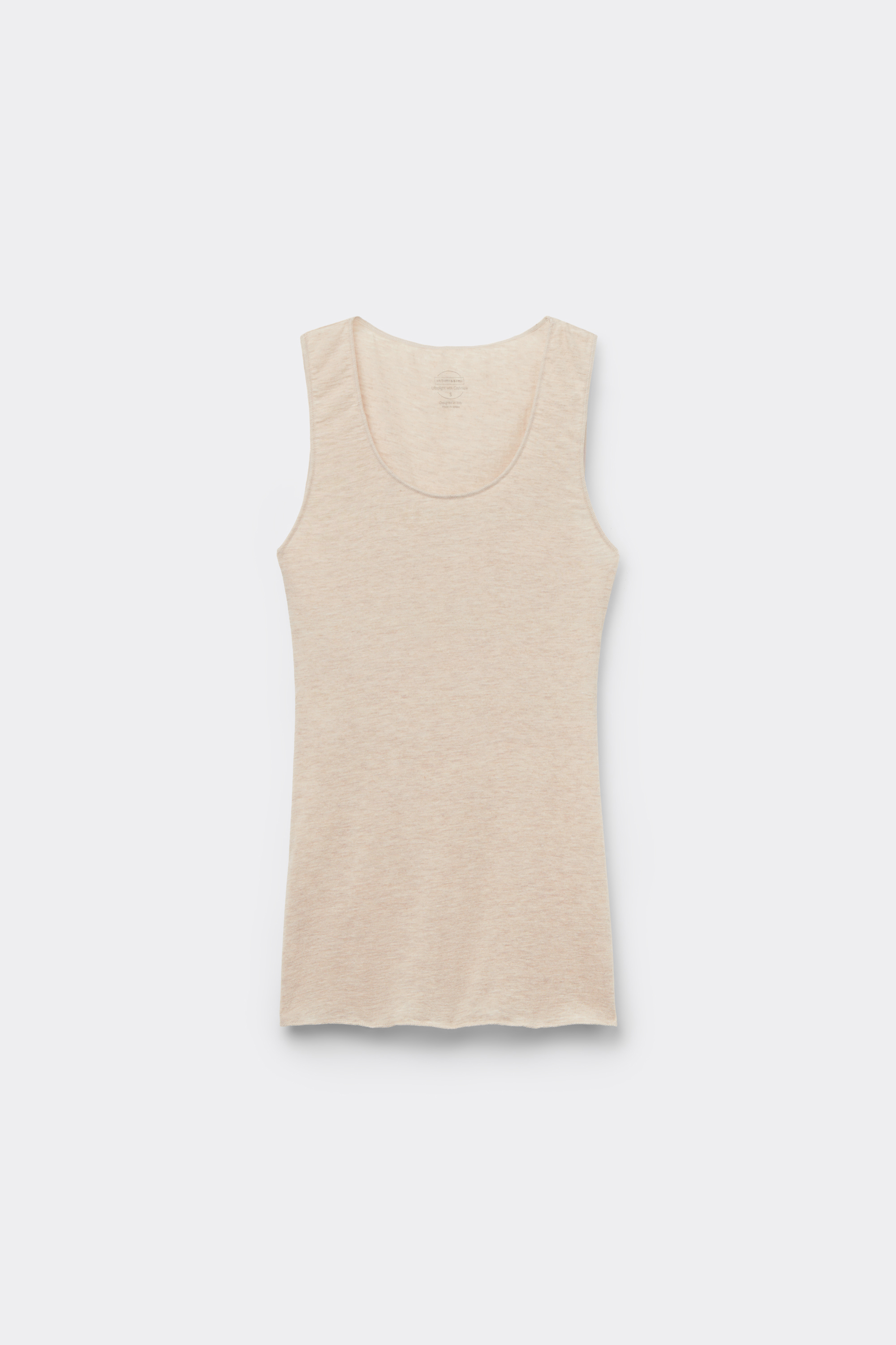 Топ-майка из ультралегкого кашемира и модала. Модель с широкими бретелями и низким круглым вырезом.