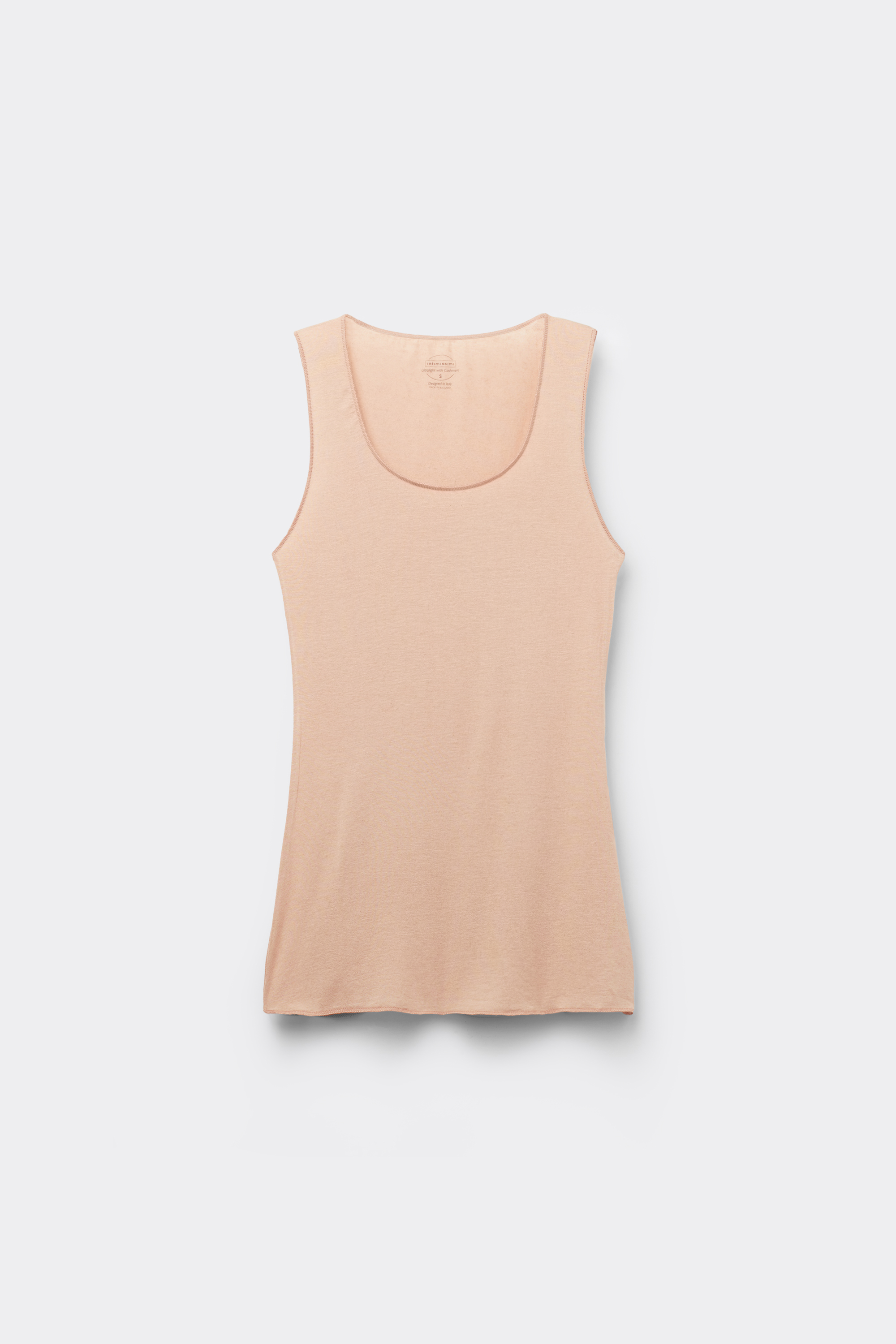 Топ-майка из ультралегкого кашемира и модала. Модель с широкими бретелями и низким круглым вырезом.