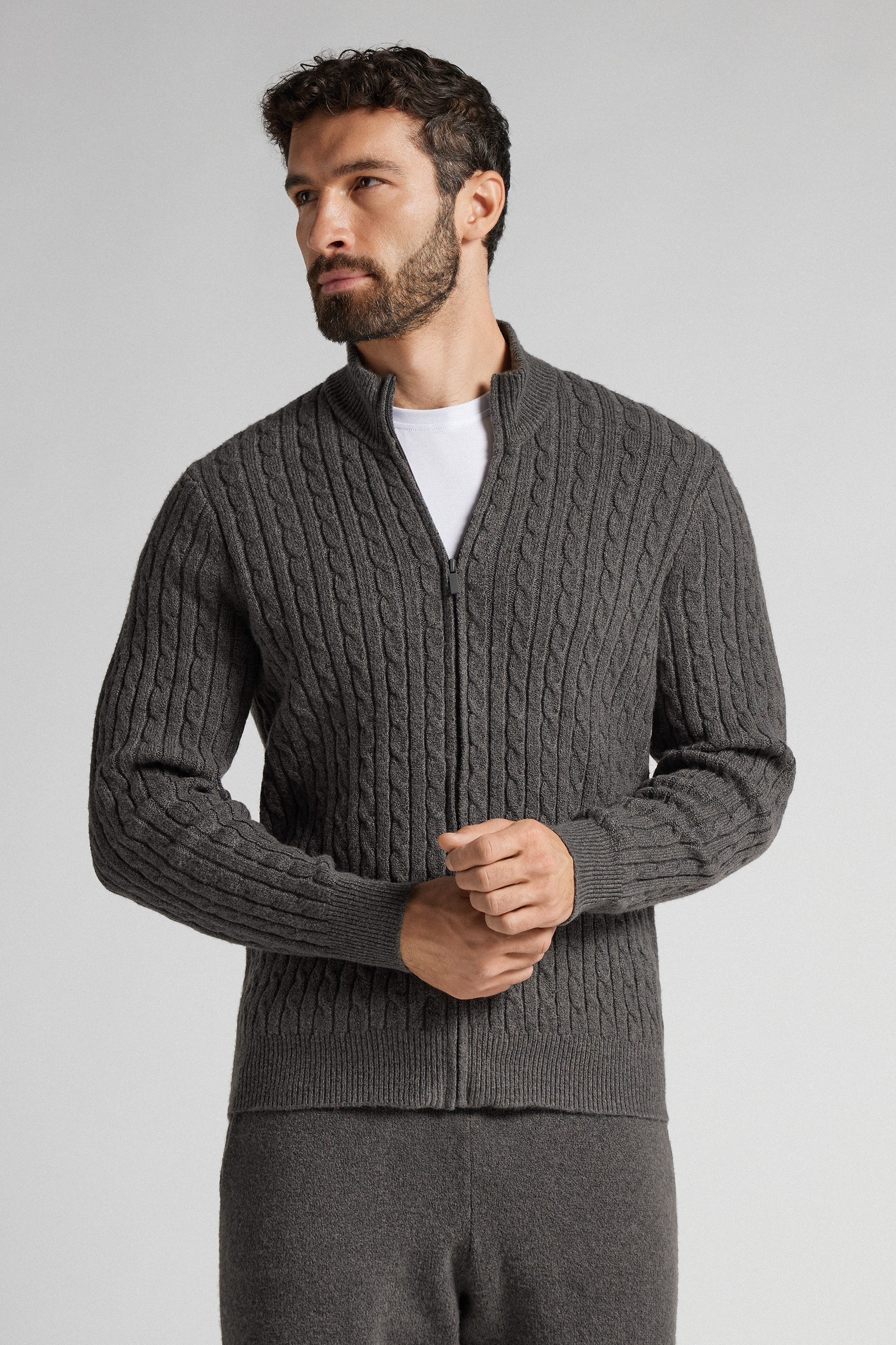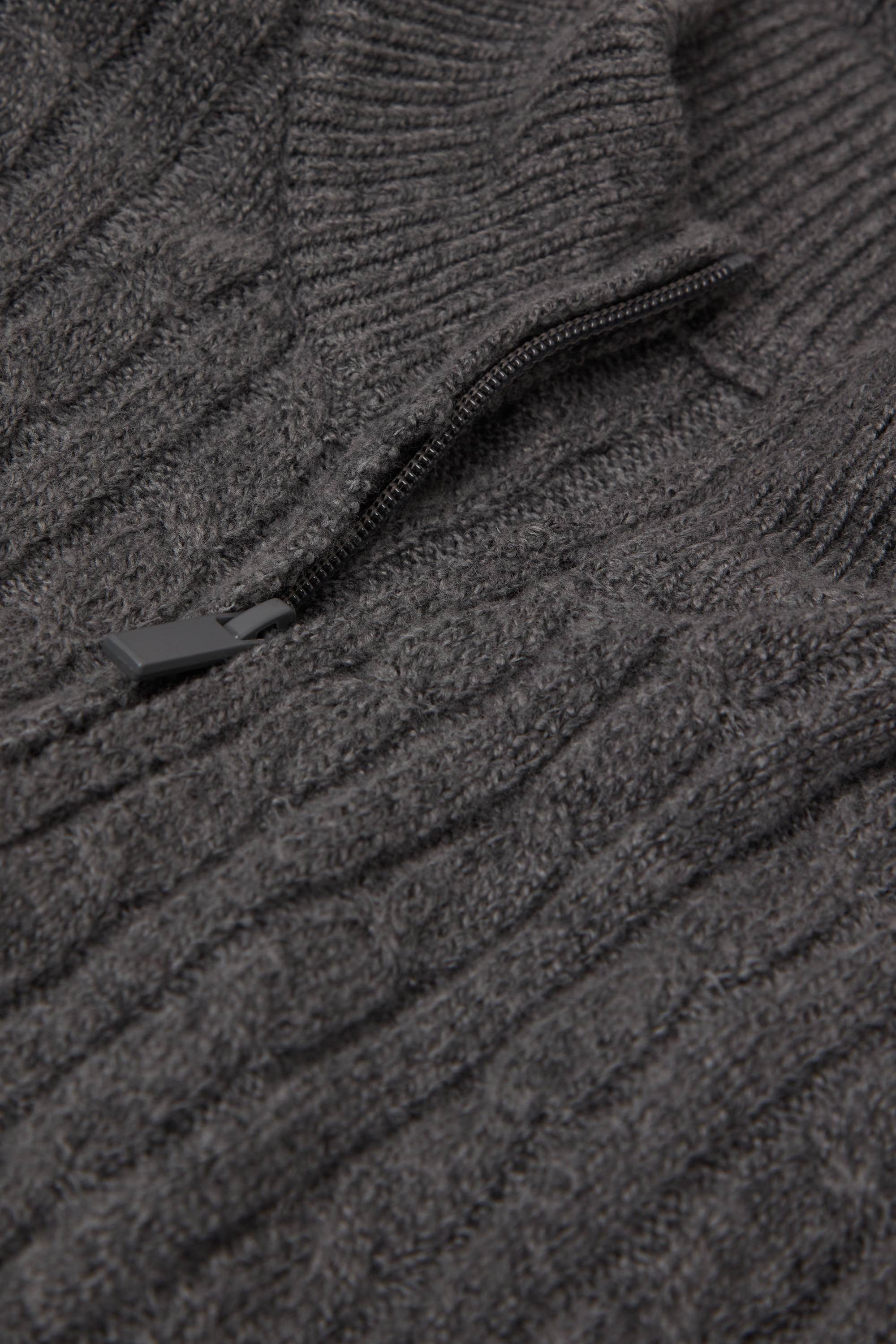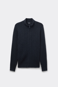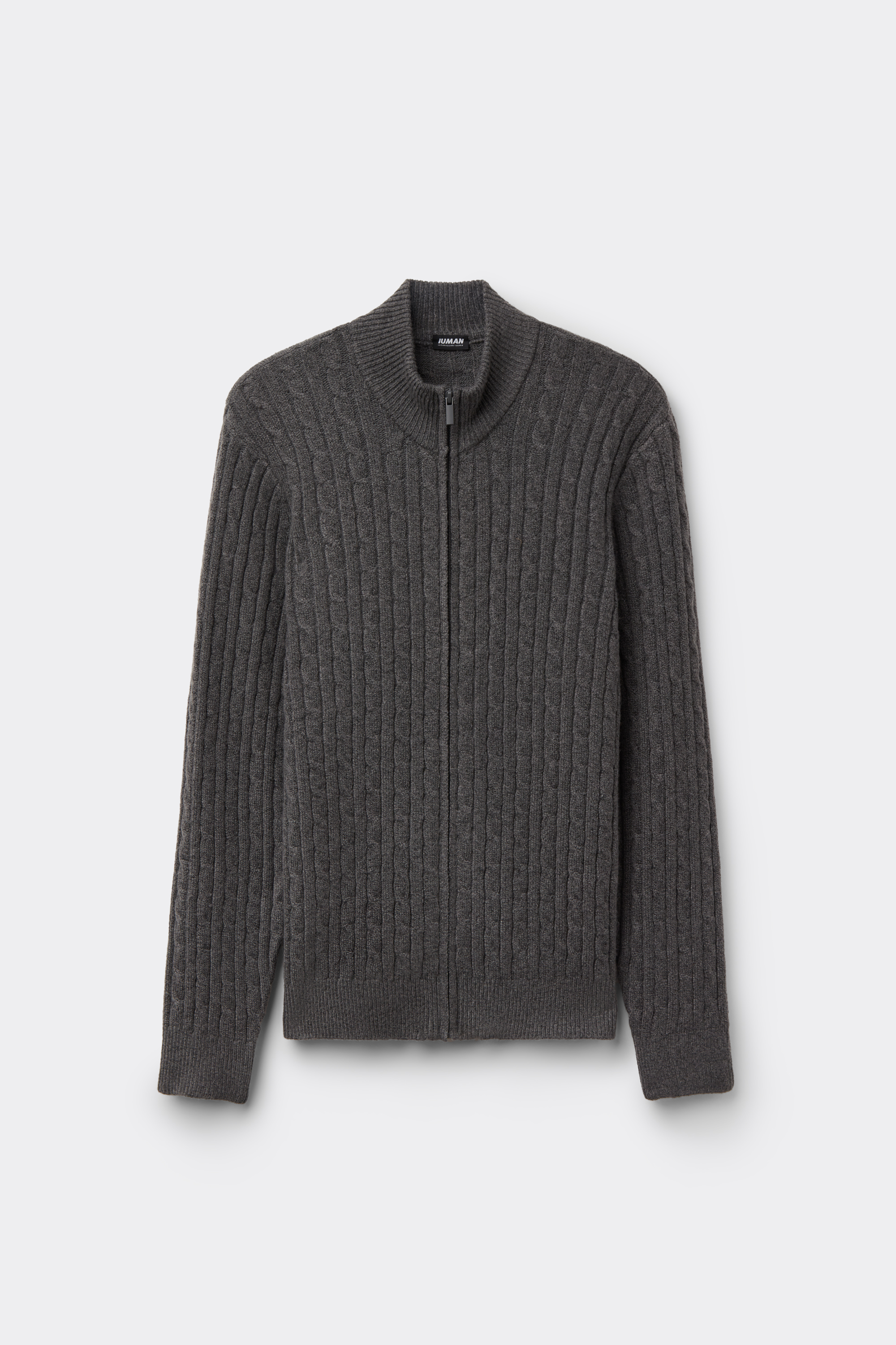 Трикотажный Джемпер с Узором «Косичка» на Молнии