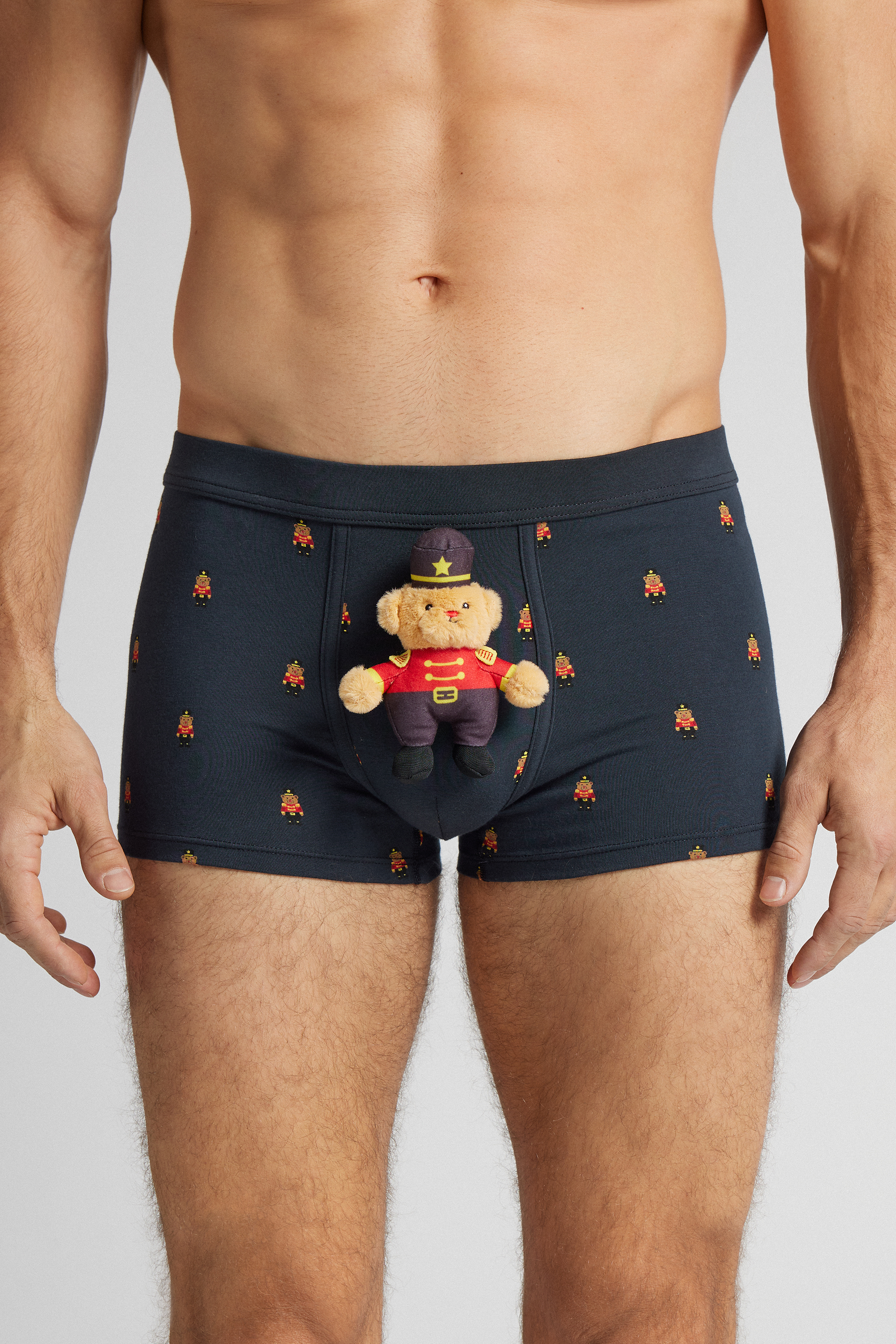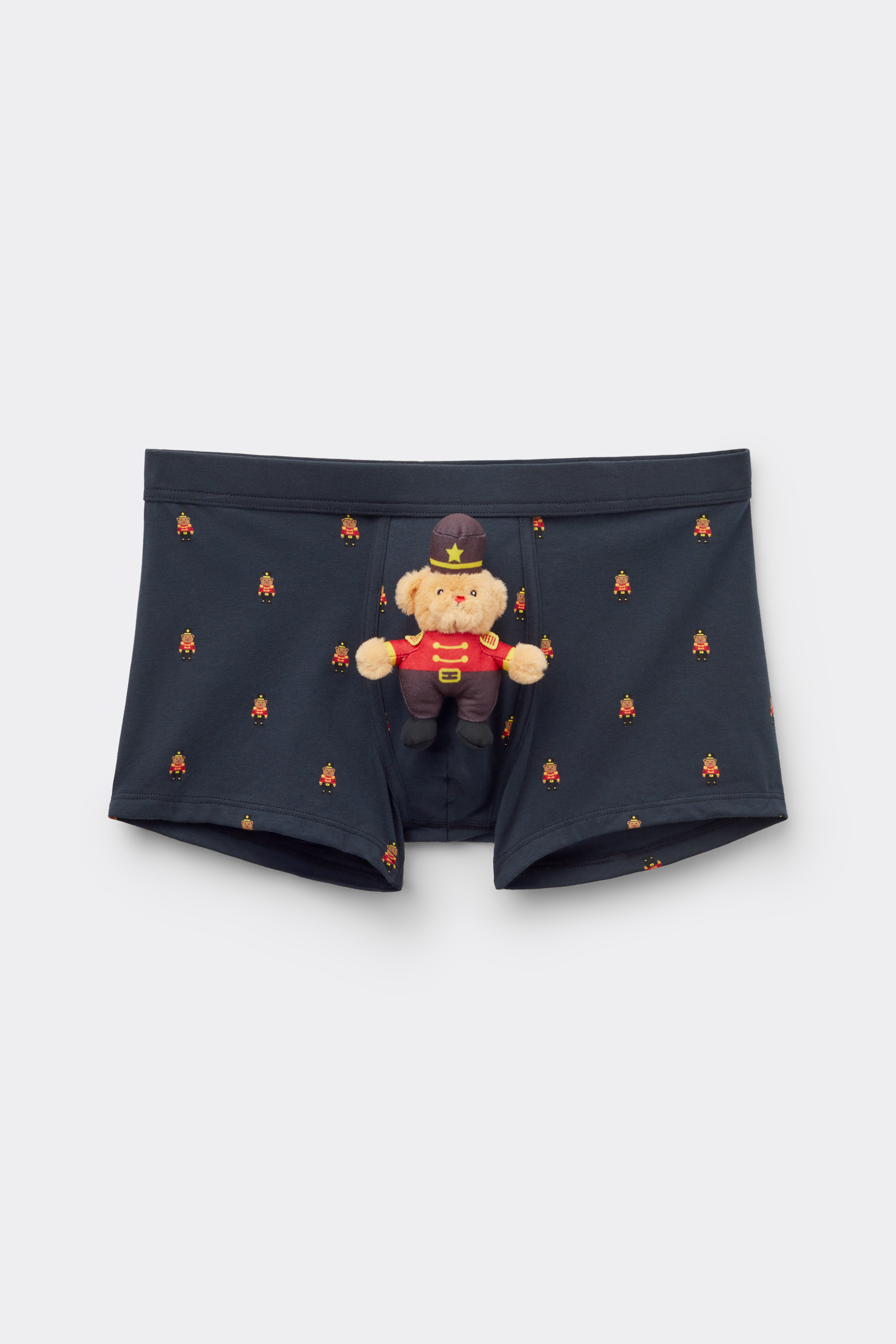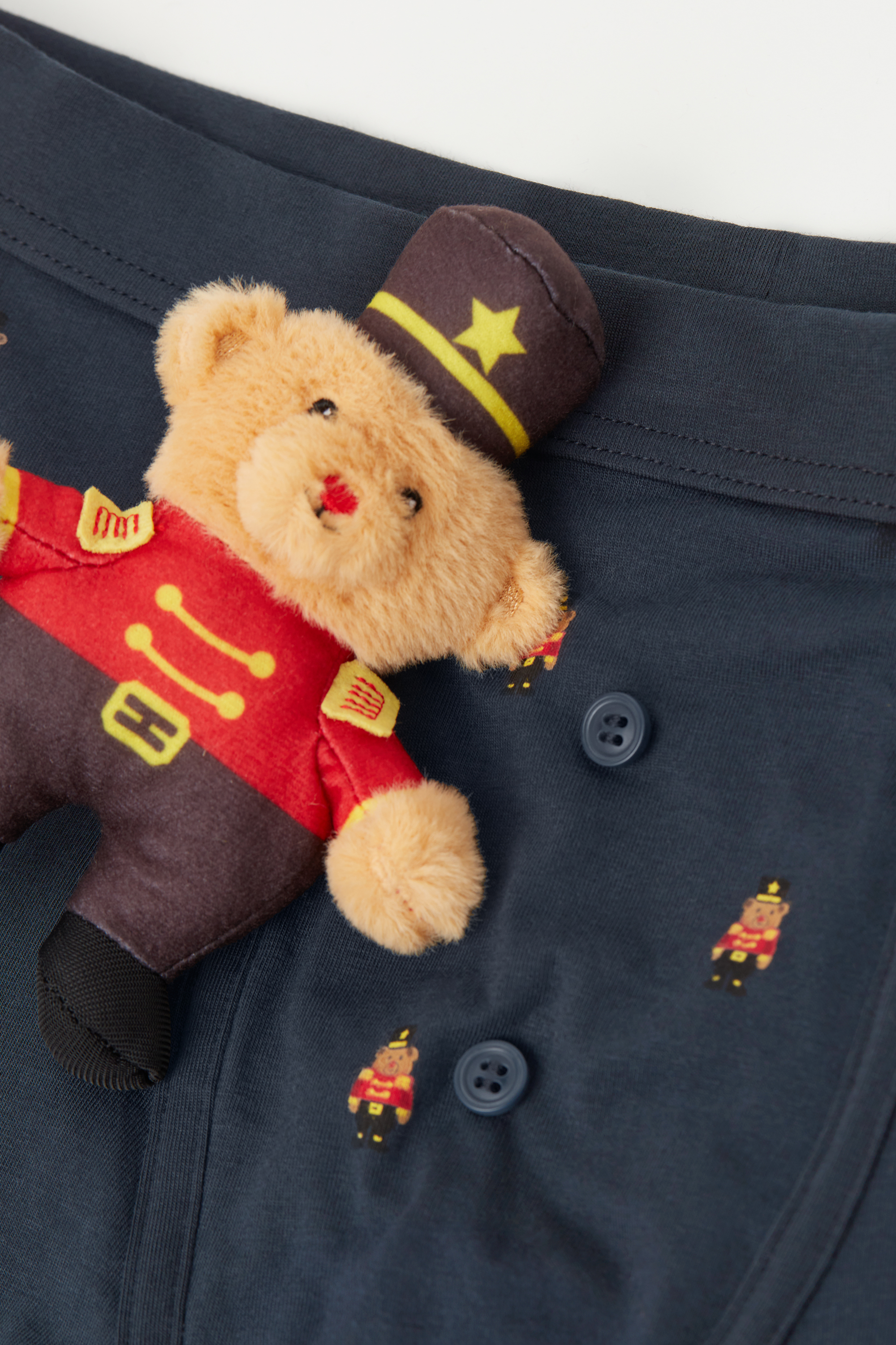 Мужские трусы боксеры из мягкого эластичного хлопка Superior. Принт медвежонка, напоминающего фигурку солдатика Щелкунчика, по всему изделию. Симпатичный медвежонок украшает также вставку по центру.