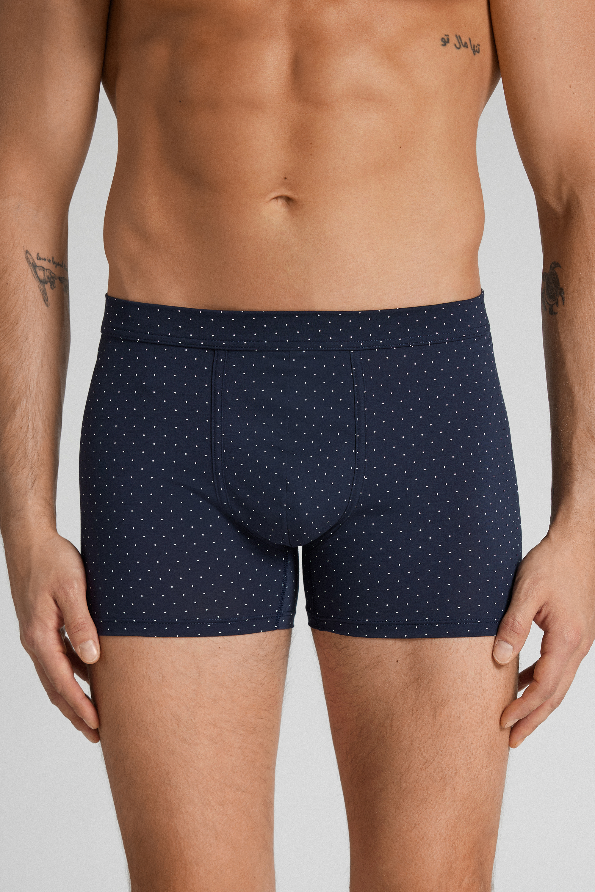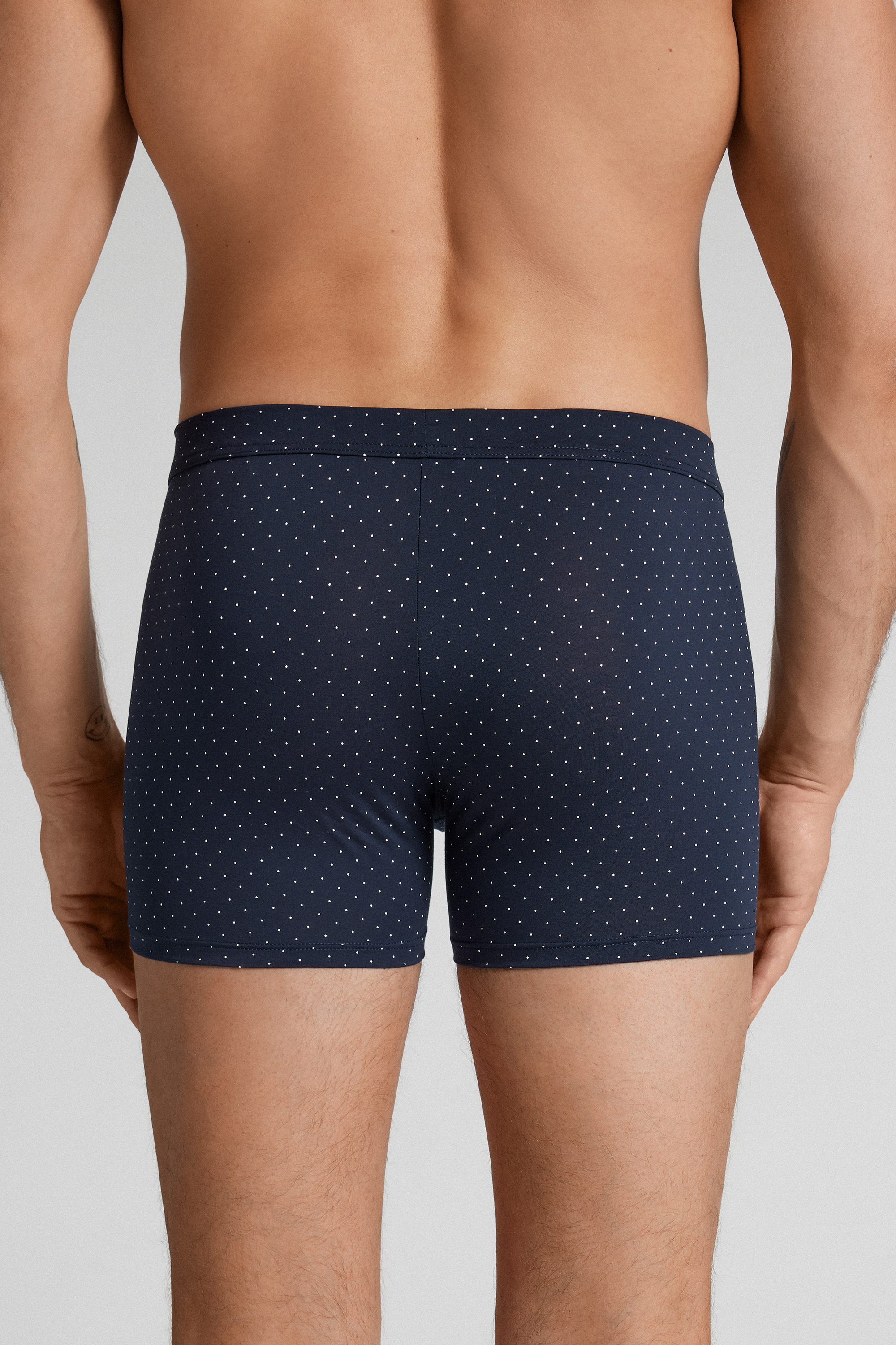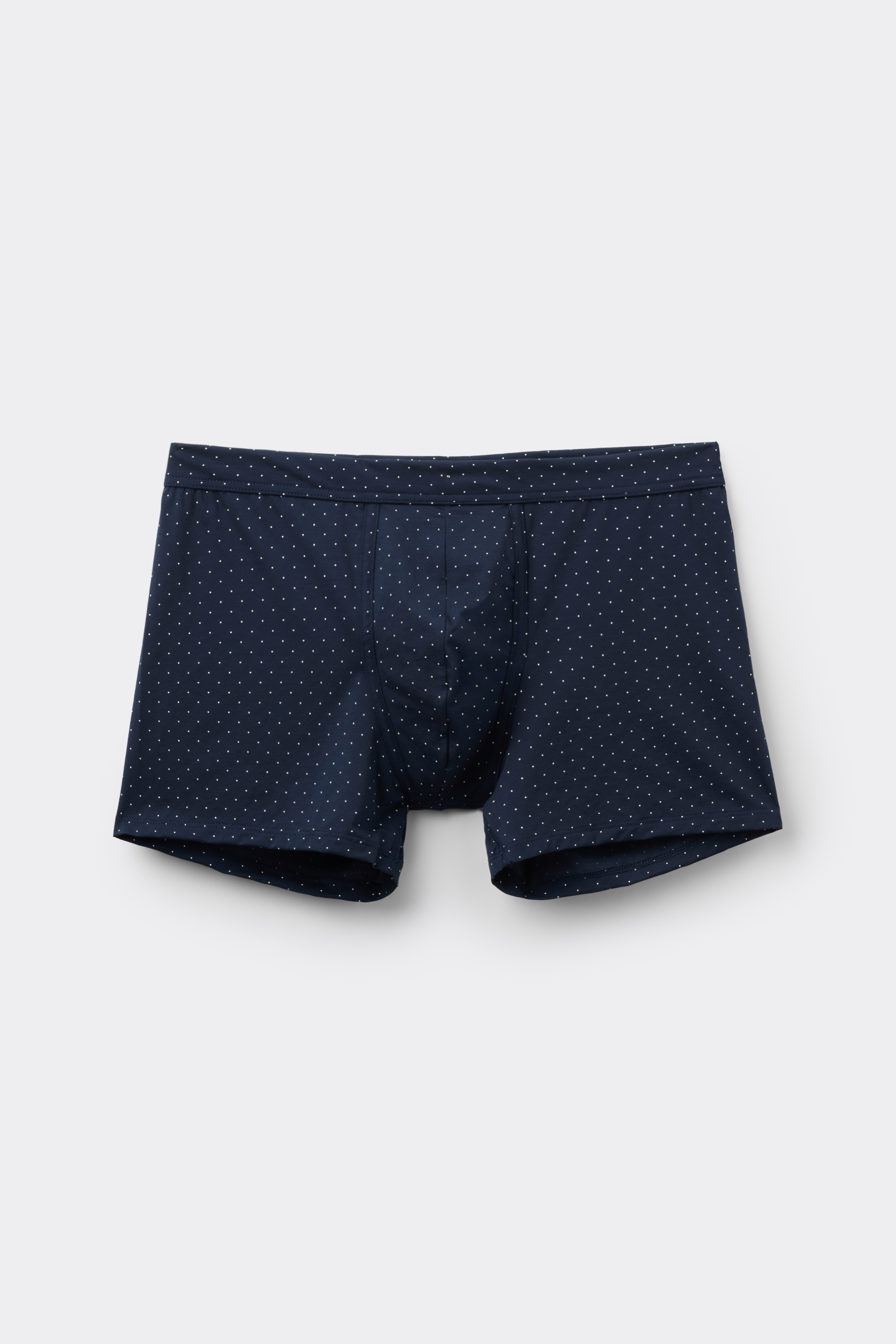 Очень мягкие и комфортные трусы боксеры из эластичного джерси на основе мерсеризованного хлопка. Принт «горошек» и блестящая фактура ткани придают изделию изысканный и элегантный вид.