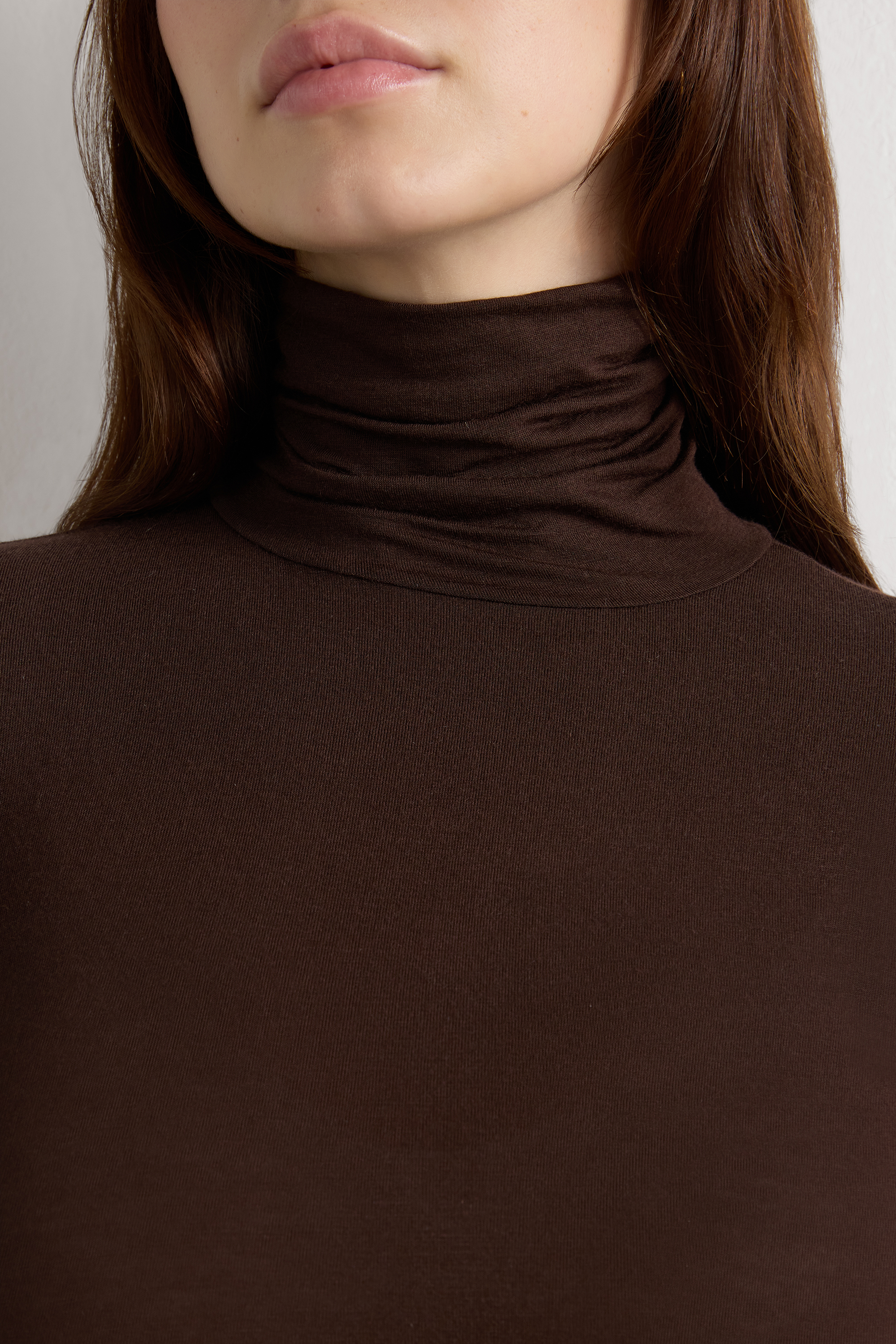 Элегантная водолазка с длинными рукавами, выполненная из ультралегкого кашемира и модала, обеспечивает невероятный комфорт и стиль. Благодаря уникальной комбинации натуральных материалов, водолазка обладает мягкой и нежной текстурой, которая приятно прилегает к коже и сохраняет тепло, делая ее идеальной для носки в любое время года. Эта водолазка из кашемира и модала идеально подходит как для повседневного образа, так и для создания более изысканного наряда. Классический дизайн с высоким горлом делает эту водолазку универсальной деталью гардероба, которую можно сочетать с различными стилями и аксессуарами. Благодаря своему легкому весу и эластичности, водолазка женская с горлом из кашемира подходит для тех, кто ценит комфорт и свободу движений. Модал в составе ткани обеспечивает долговечность и прекрасную способность ткани сохранять форму даже после многократных стирок. Если вы ищете мягкую и стильную водолазку, которая подчеркнет вашу фигуру и обеспечит тепло в прохладную погоду, эта модель станет отличным выбором.