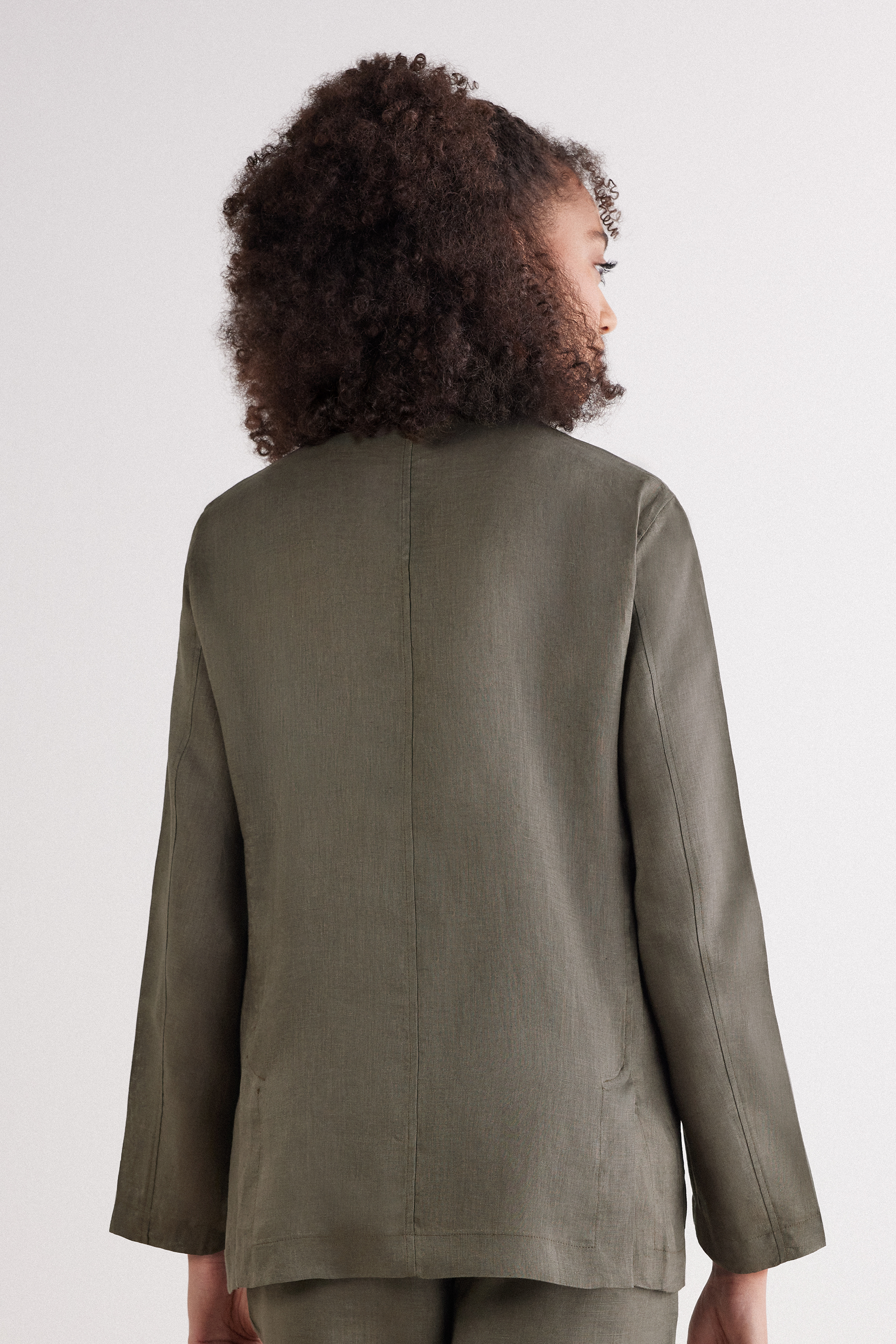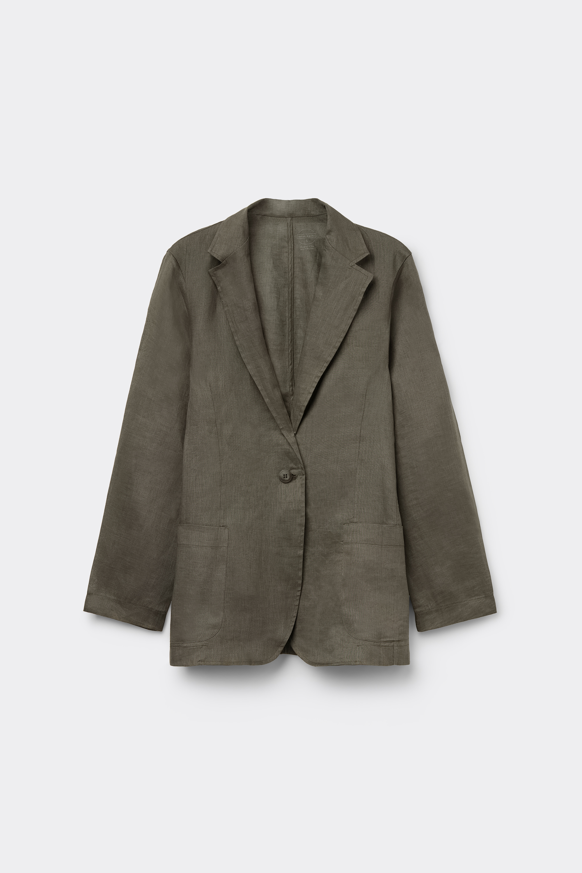 Мягкий жакет из льняной ткани. Эта универсальная модель позволит вам выглядеть элегантно и непринужденно, создавая как повседневные, так и более изысканные образы.